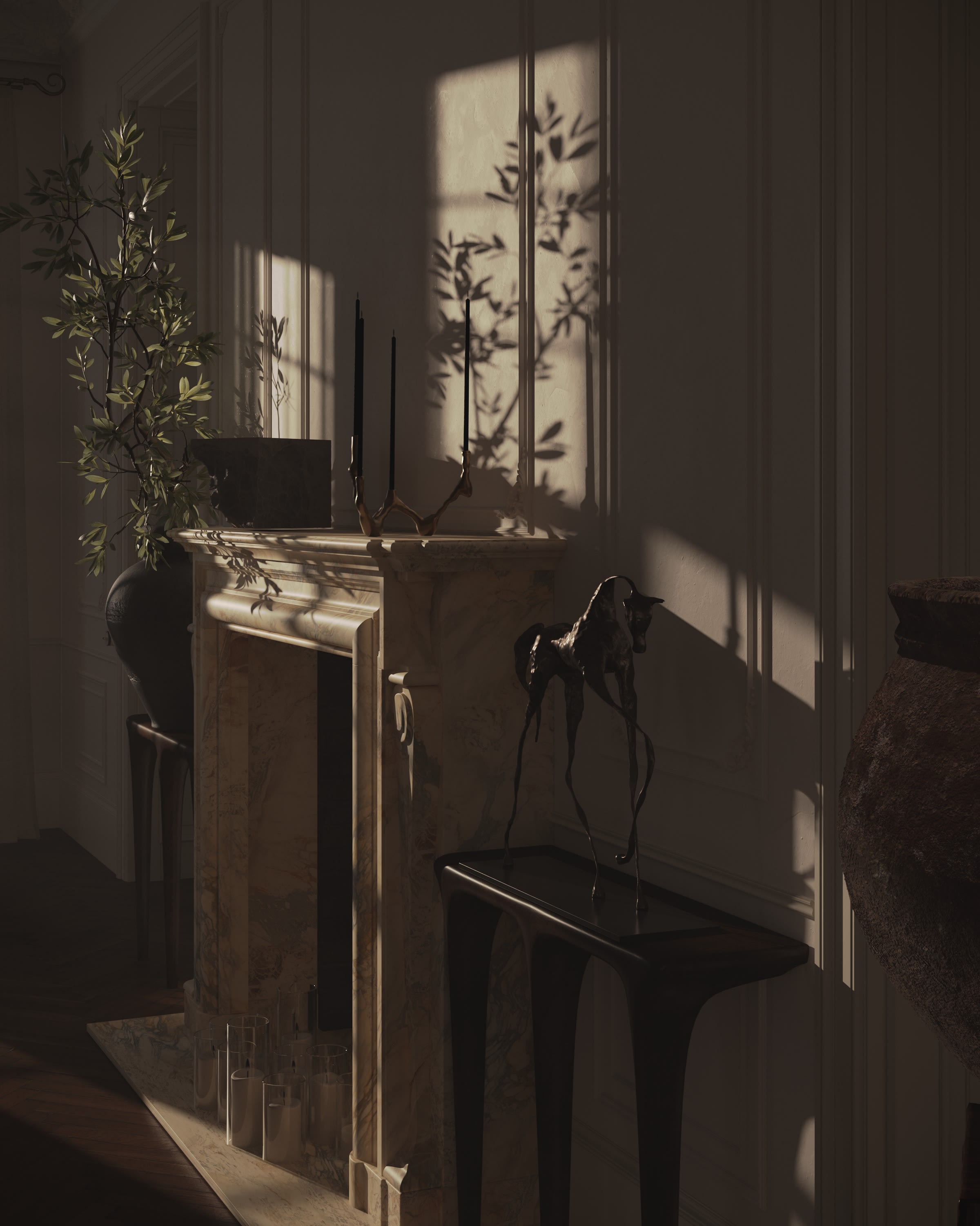 I create a single conceptual interior portrait.One frame. One atmosphere.